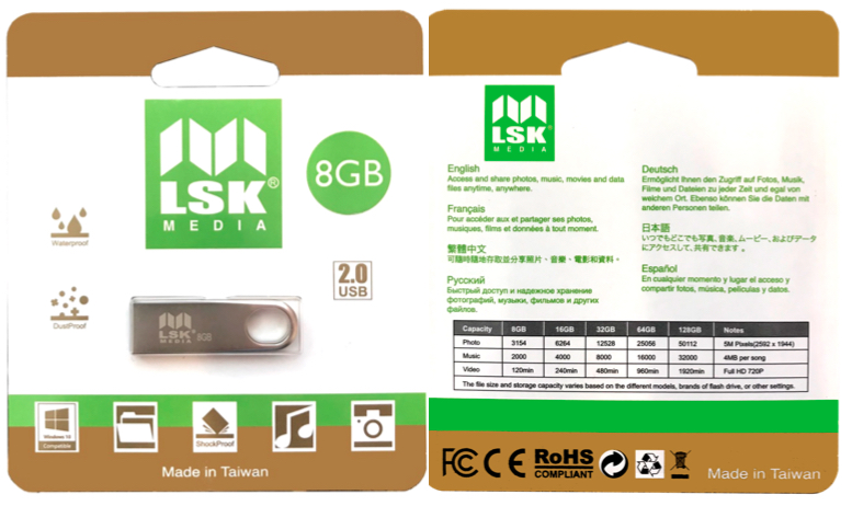 The LSK USB Flash Drive does not require any battery, cables or software drivers. It is compatible with any computers with a USB port. Experience the light weight, compact design, high performance and fast data transfer with the LSK USB Flash drive.